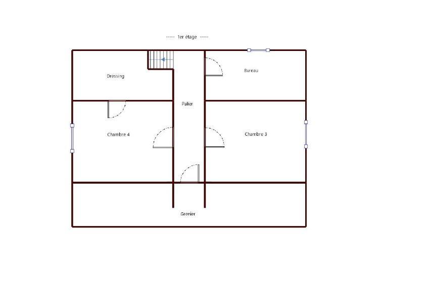 A l'étage : couloir desservant 2 chambres, un coin rangement